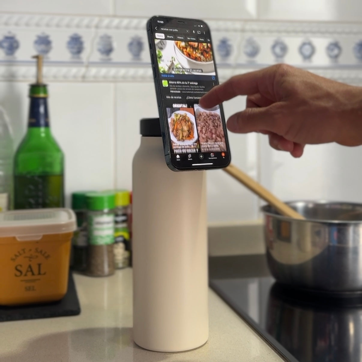 Nunca había tenido una botella tan funcional. No solo mantiene mi agua fría durante horas, sino que también sujeta mi móvil de forma segura. Perfecta para videollamadas o ver contenido sin usar las manos