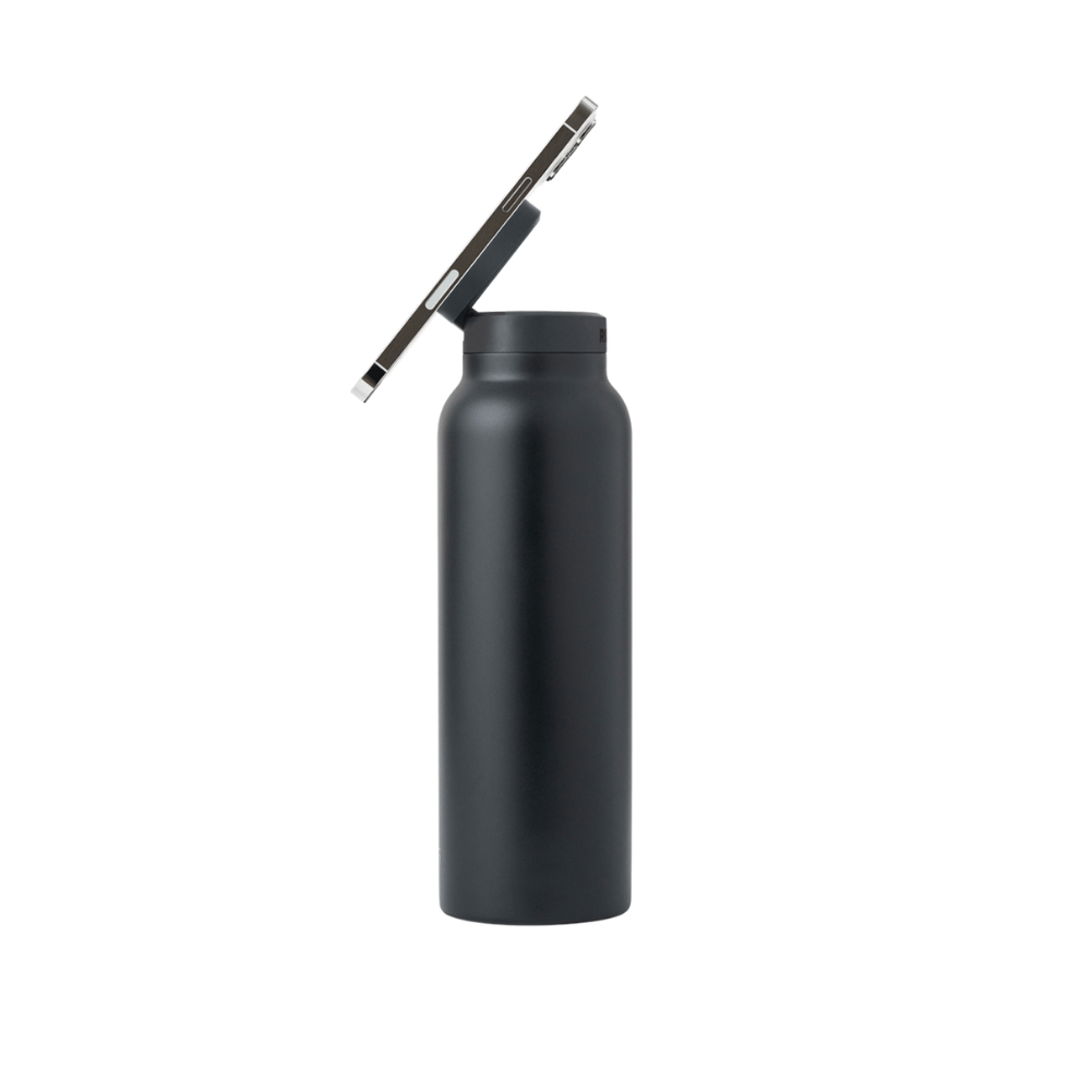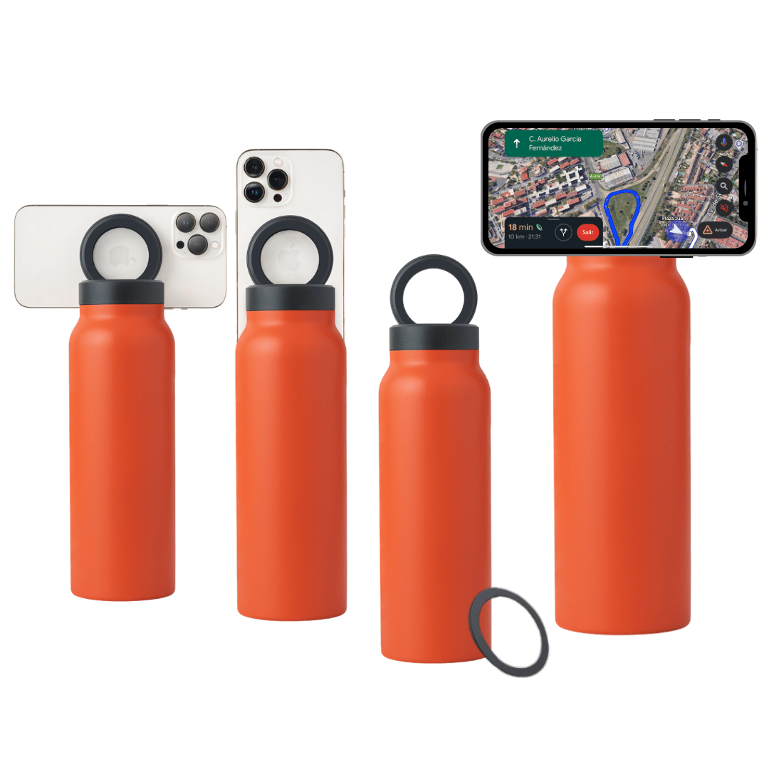 Diseño 2 en 1: Botella térmica de acero inoxidable con soporte magnético integrado para mantener tu teléfono seguro y siempre a la vista.