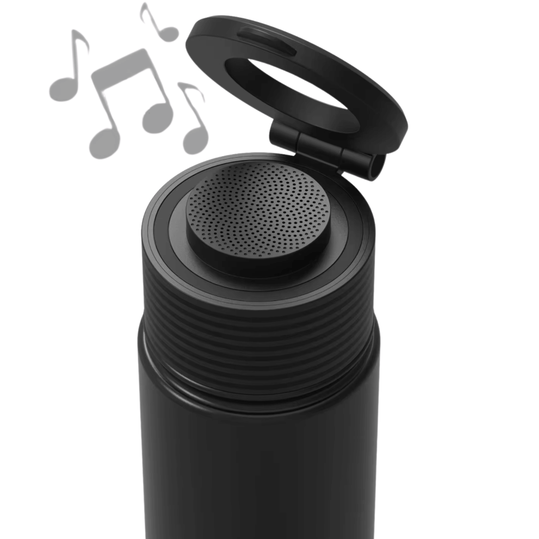 Su altavoz Bluetooth 5.3 integrado está perfectamente equilibrado para ofrecer un audio nítido y constante, tanto si la botella está llena como vacía. La base sólida garantiza firmeza total en cualquier superficie, mientras disfrutas de más de 3 horas de reproducción continua.