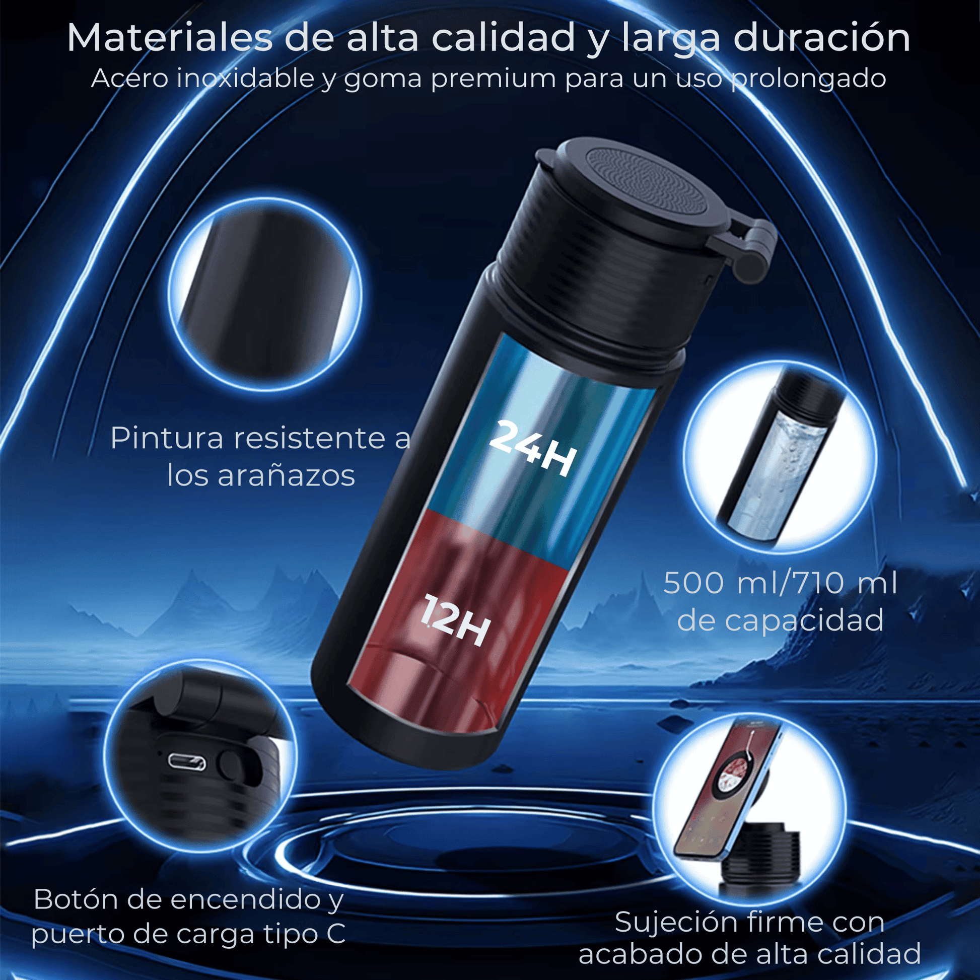 Disponible en 500 ml y 710 ml, es la elección ideal para quienes buscan funcionalidad, innovación y estilo en un solo producto.